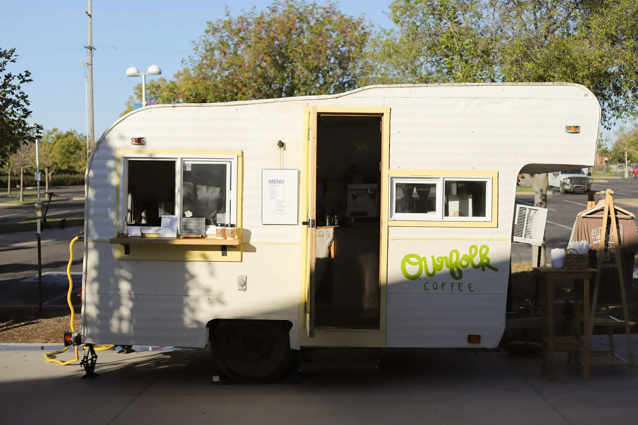 OurFolk Coffee is a husband and wife owned, mobile, full service espresso bar in Wichita, Kansas offering specialty drinks, house-made syrups, locally roasted coffee beans, and clean + intentionally sourced ingredients, all served out of our vintage coffee camper.